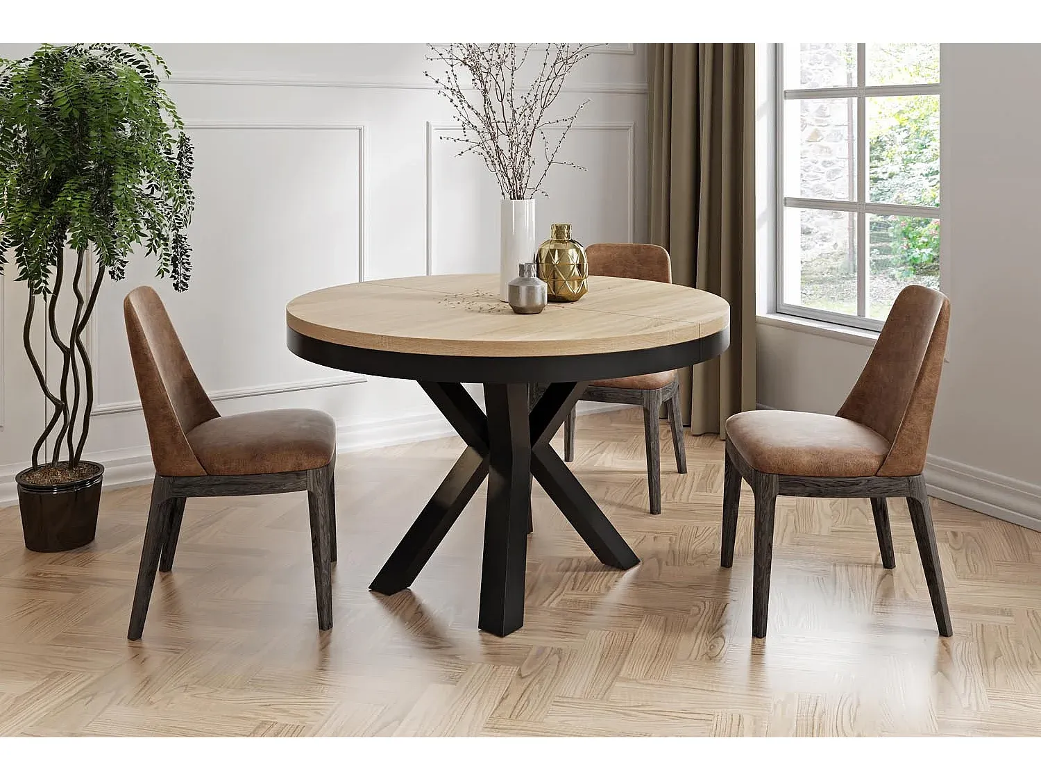 Höhenverstellbarer Holztisch mit Metallakzenten